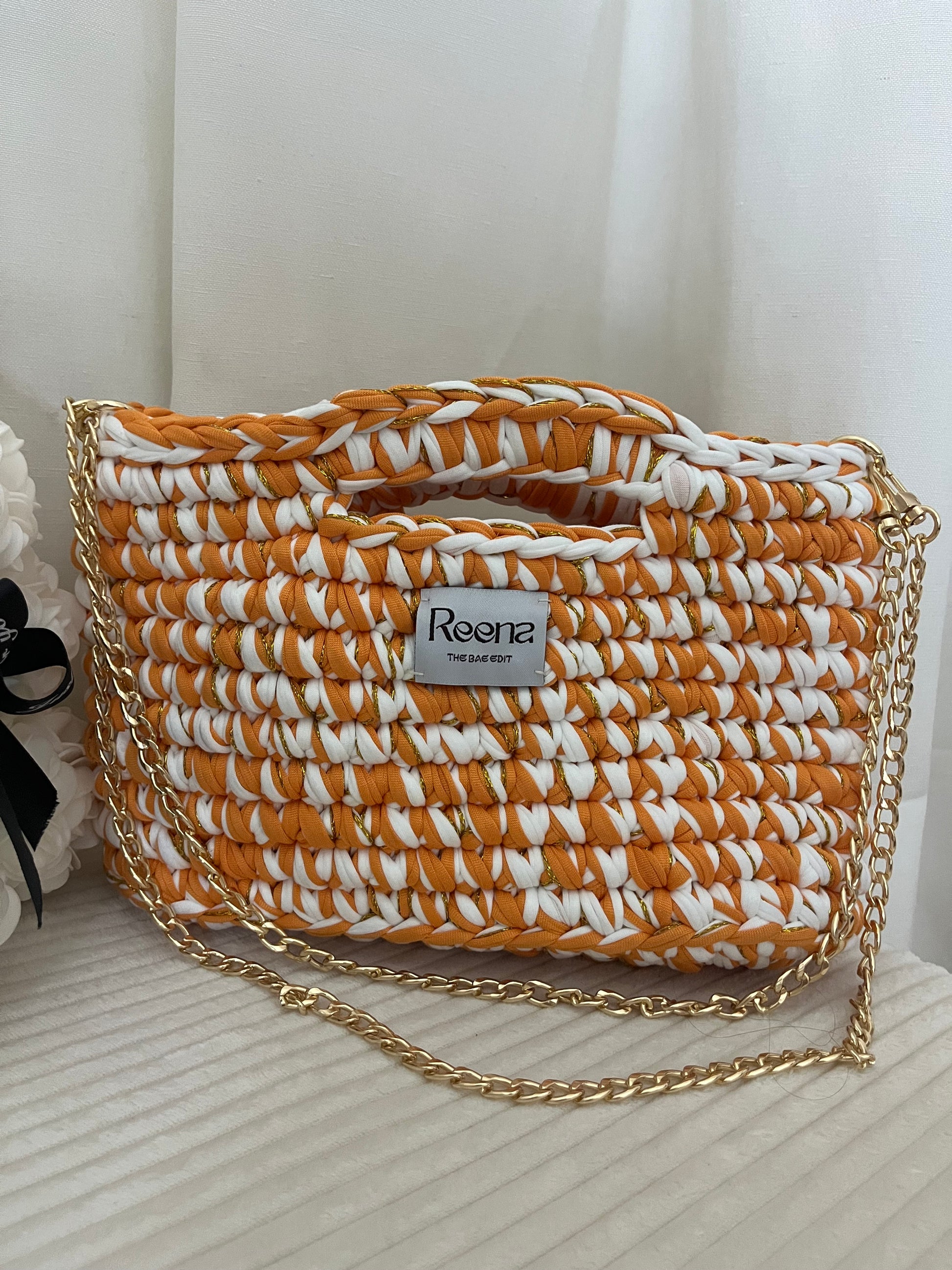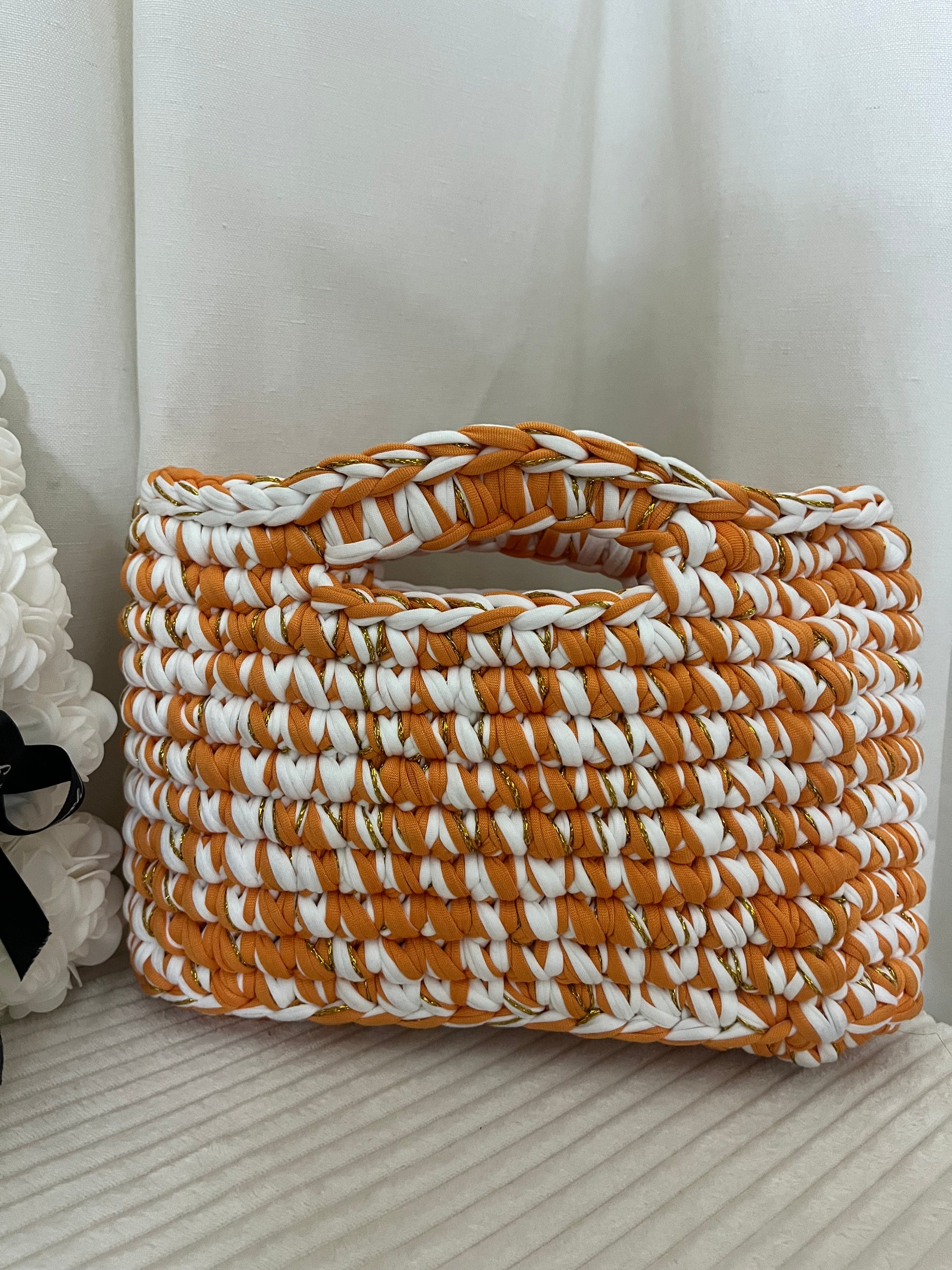 Son orange éclatant , associé à des fils blanc et à de délicates touches dorées , crée un mélange chaleureux qui rappelle un lever de soleil 🌅.